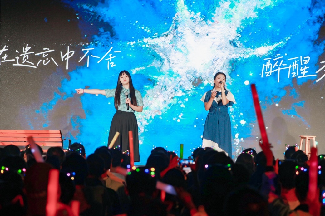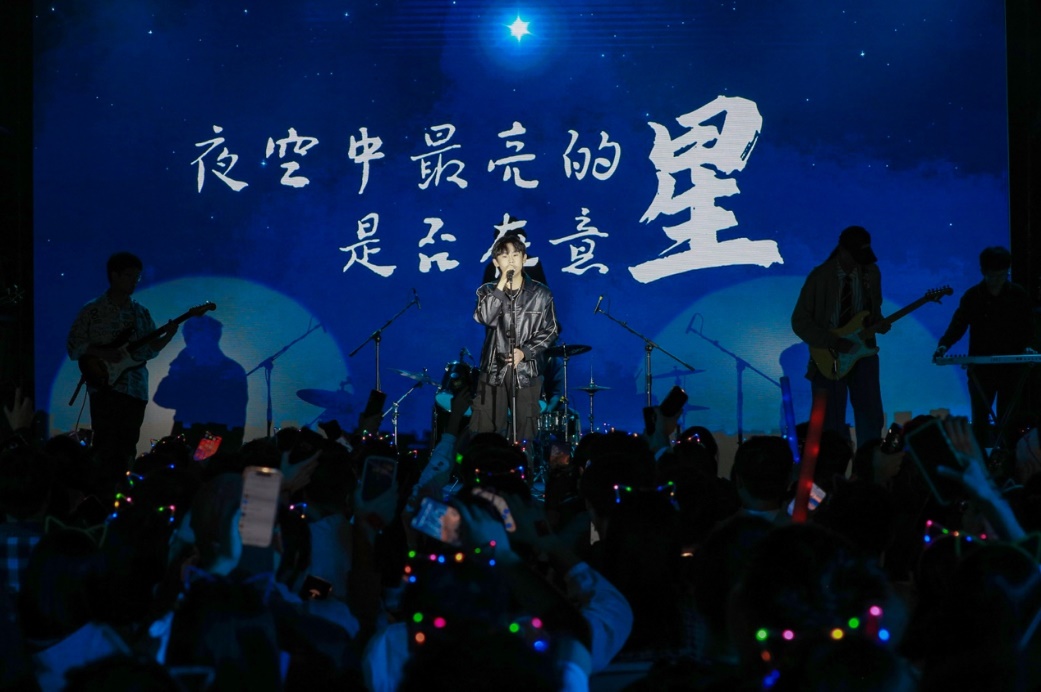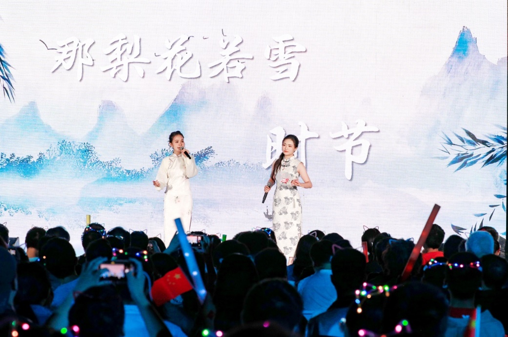 青春歌曲和經(jīng)典曲目的薈萃交融:《青春大概》《夜空中最亮的星》或青澀懵懂,或溫柔堅定,展示了追夢路上永不服輸?shù)尿湴僚c勵志,觀眾們一起揮舞手中的熒光棒、跟隨著歌手哼唱,倍感幸福充實!督裉臁贰洞和パ贰缎腋?燔嚒返冉(jīng)典歌曲更承載著北大學(xué)子對音樂與美的熱忱追求,為師生帶來一場視聽盛宴。