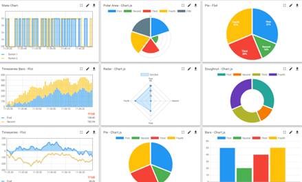 4)提供豐富的可視化控件庫,通過拖拽、簡便配置即可完成美觀的UI設(shè)計。支持GIS地圖、曲線圖、柱狀、餅圖、圖表、按鈕、儀表圖等控件。