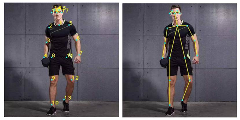 使用邊緣側(cè)推理框架Tengine檢測圖像中的所有人體并返回每個人體的矩形框位置,精準(zhǔn)定位 21 個核心關(guān)鍵點(diǎn),包含五官、四肢、脖頸等部位,更多關(guān)鍵點(diǎn)持續(xù)擴(kuò)展中;支持多人檢測、人體位置重疊、遮擋、背面、側(cè)面、中低空俯拍、大動作等復(fù)雜場景。