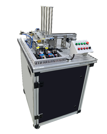 物料供給教學(xué)實訓(xùn)平臺由PLC、移動型材工作臺、控制屏、多通道井式供料機、帶式傳輸機構(gòu)、智能接口單元及控制面板、氣路控制裝置等組成。