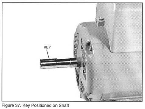 H.將鍵從制動器輪轂的鍵槽內取出,重新放入電機軸上的鍵槽內,將之放置與軸的末端平齊的位置,如圖37所示