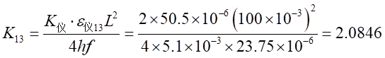 通過(guò)使用三點(diǎn)撓度計(jì),可以測(cè)定等強(qiáng)度梁上下表面的縱向應(yīng)變。其具體公式為: