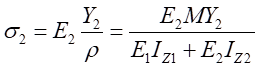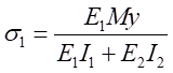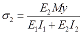 因此,可得到復(fù)合梁Ⅰ和復(fù)合梁Ⅱ正應(yīng)力計(jì)算公式分別為