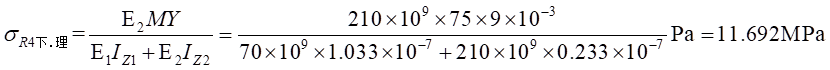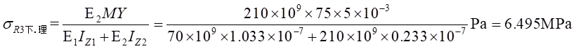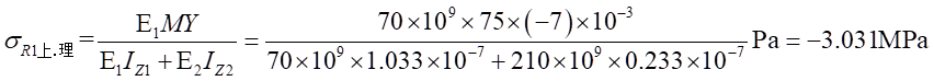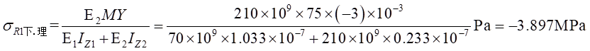 由式(1)帶入,可以得出不同材料區(qū)的彎曲正應(yīng)力分別為: