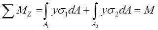 組成的內(nèi)力系,在橫截面上形成一個(gè)內(nèi)力偶矩M,即為橫截面上的彎矩M,即: