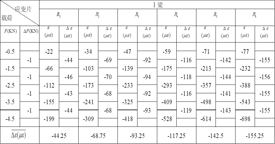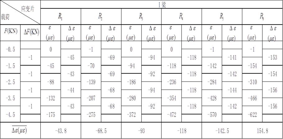 表6-1 Ⅰ梁應(yīng)變數(shù)據(jù)表