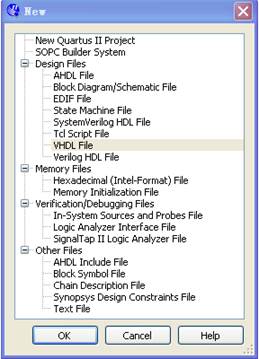 1)選擇QUARTUSII軟件中的File>New命令,出現(xiàn)New對話框。如圖4-2-2所示。