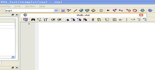 3、 按照實(shí)驗(yàn)原理和自己的想法,在VHDL編輯窗口編寫VHDL程序,用戶可參照光盤中提供的示例程序。