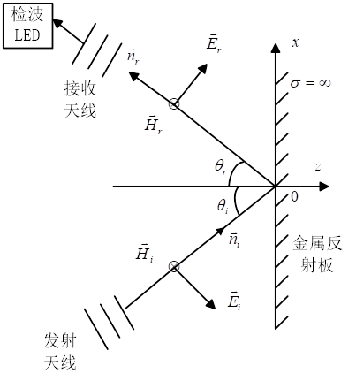 1)垂直或水平極化波斜入射到導體平面的反射波;沿反射角方向LED最亮。