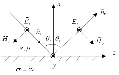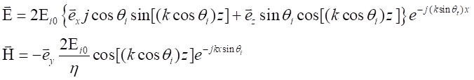 取坐標系如圖。能與上面類似的處理,可得此時媒質(zhì)1中的合成波的電磁場表示式為