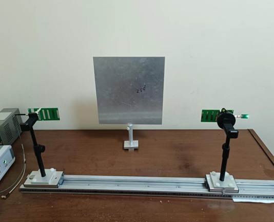 3、 移動反射板,如圖所示,將接收八木天線安裝到支架上對準反射波來波方向,注意與反射電場極化匹配。