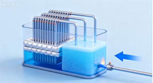 11.10.2、外界熱源通過換熱管加熱,石蠟吸收熱量逐漸融化(固態(tài)→液態(tài)),紅色箭頭標(biāo)注熱量輸入方向