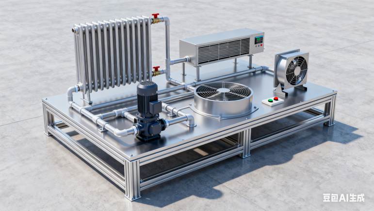 12.1、 裝置采用鋁型材框架底座,臺(tái)上安裝有包括鋁塑管、水泵、暖氣片、風(fēng)機(jī)盤管、小型風(fēng)機(jī) 風(fēng)機(jī)開關(guān)