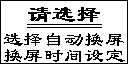 按+/選擇鍵,選擇自動換屏或換屏?xí)r間設(shè)定。如選選擇自動換屏按功能/確認(rèn)鍵顯示如下: