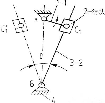 機(jī)構(gòu)說(shuō)明及工作特點(diǎn):如圖1所示的導(dǎo)桿機(jī)構(gòu),若使極位夾角θ>0,該導(dǎo)桿具有急回特性。該機(jī)構(gòu)常用于將等速轉(zhuǎn)動(dòng)轉(zhuǎn)換為具有急回特性的往復(fù)擺動(dòng)。