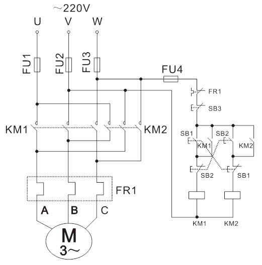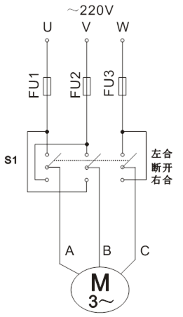 1、倒順開關正反轉控制線路: