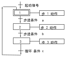 一個三步循環(huán)步進(jìn)的順序功能圖如圖1所示。