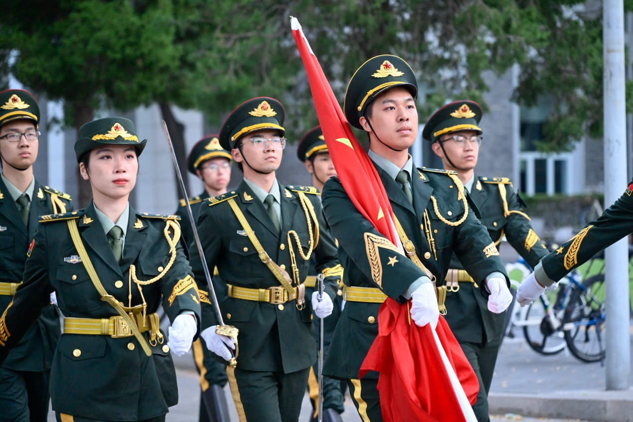 能在國慶升旗,是我無上的榮耀。作為北大國旗護(hù)衛(wèi)的一員,我愿以青春守護(hù)國旗,用行動(dòng)詮釋擔(dān)當(dāng)。愿北大培育更多棟梁,愿祖國繁榮昌盛、山河無恙!每當(dāng)國歌奏響,心中便涌起對(duì)先輩的敬仰與對(duì)未來的憧憬,這份責(zé)任將激勵(lì)我不斷前行,以吾輩之微光,共筑中華之輝煌。