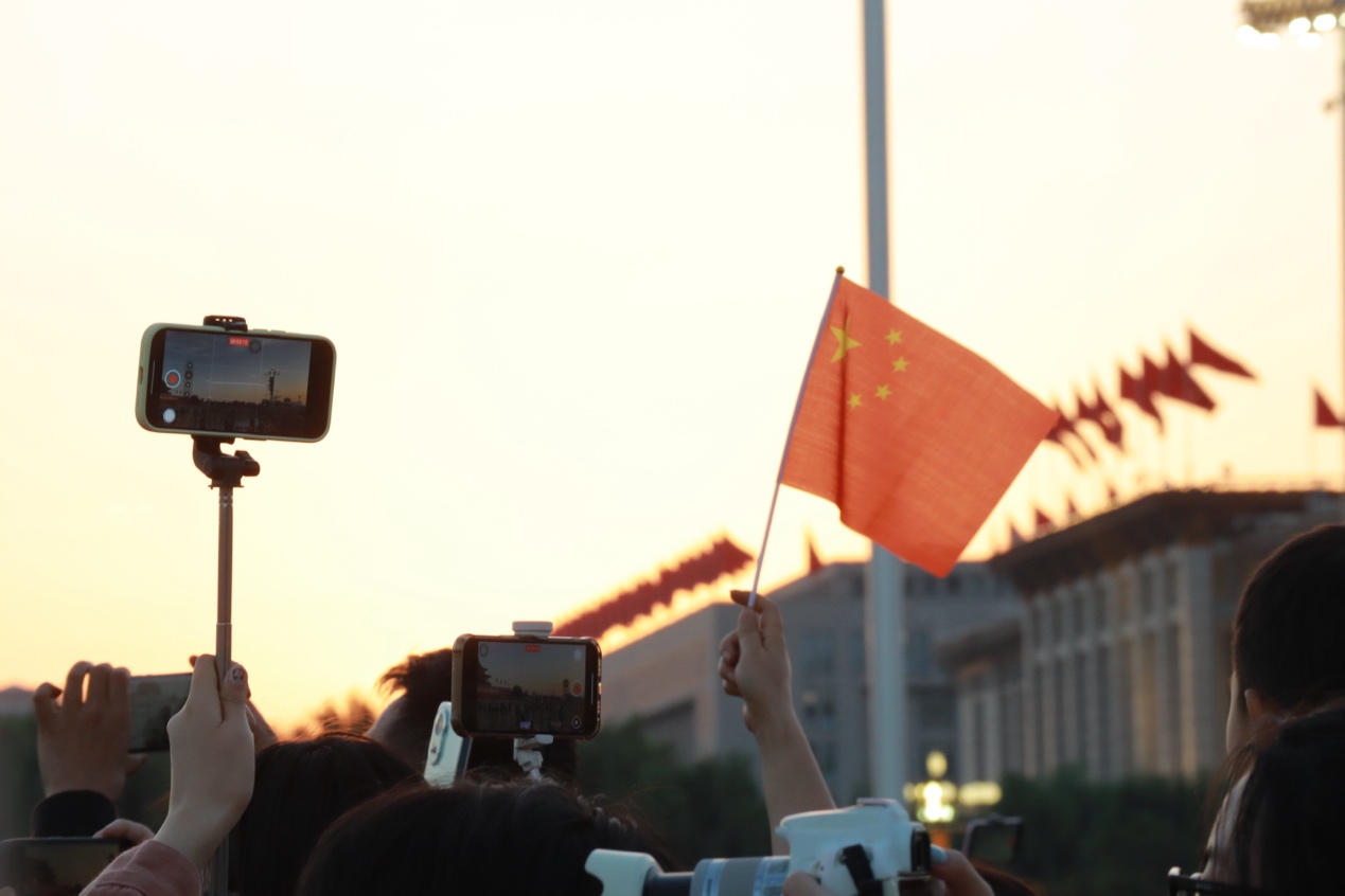 當(dāng)東邊泛起旭光,當(dāng)軍樂鏗鏘奏響,激動(dòng)人心的時(shí)刻即將到來。現(xiàn)場(chǎng)觀禮的震撼是無法言喻的。親眼看著國旗緩緩上升,親耳聽到在場(chǎng)來自五湖四海的中華兒女共同唱響國歌,那一刻,我們的心緊緊凝聚在一起,澎湃著最真誠的愛意,共同為祖國母親慶生。和平鴿從身旁飛過,我眼前也浮現(xiàn)出革命先輩們?cè)⊙獖^戰(zhàn)的身影,他們始終與我們同在,不斷提醒著我們,今天的幸福來之不易,也讓我更加意識(shí)到作為北大學(xué)子,作為新時(shí)代青年所肩負(fù)的使命。最后,千言萬語匯成兩句話:祝福祖國生日快樂!祝愿?jìng)ゴ笞鎳睒s昌盛!