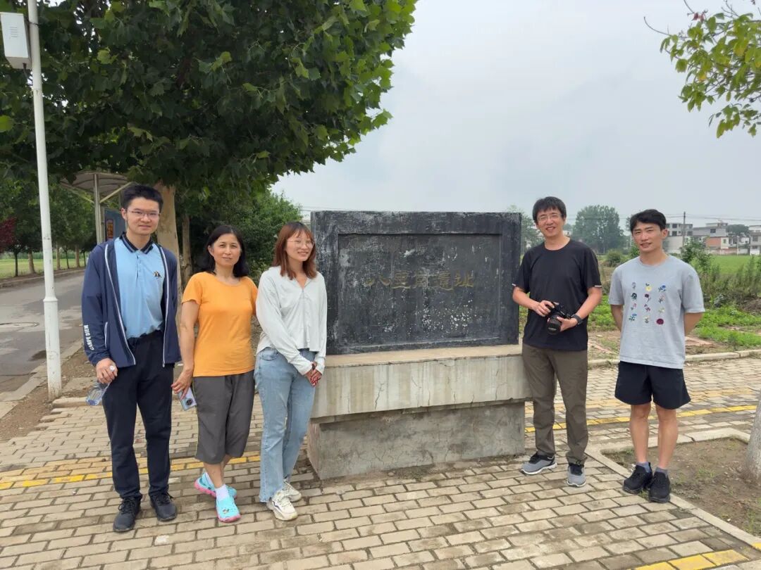 圖4.部分作者在八里崗遺址合影(左起:張?zhí)烀鳌嬘窈、楊婷玉、黃巖誼、王勁成;攝影:張海)